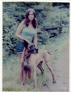 Well, I covered the horse a couple posts ago. The dog was a Great Dane named Woody. We were pups together, which makes a bond that can’t be repeated. He wasn’t mine alone. He was the family dog, but that made him all the more a part of my life at that time. Though Woody did come inside, he was too big and rambunctious really to be a house dog, so he spent the night in a dog house my dad built for him. The dog house was as big as a garden shed, had electric heat, and opened to an oversize dog run. Woody lived for 13 years, which is long for a big dog. My sister Sharon (1950-95) was the poet of the family, so I let her say the rest. She wrote this at age 16 or so. It’s right up Lorne Greene’s alley.